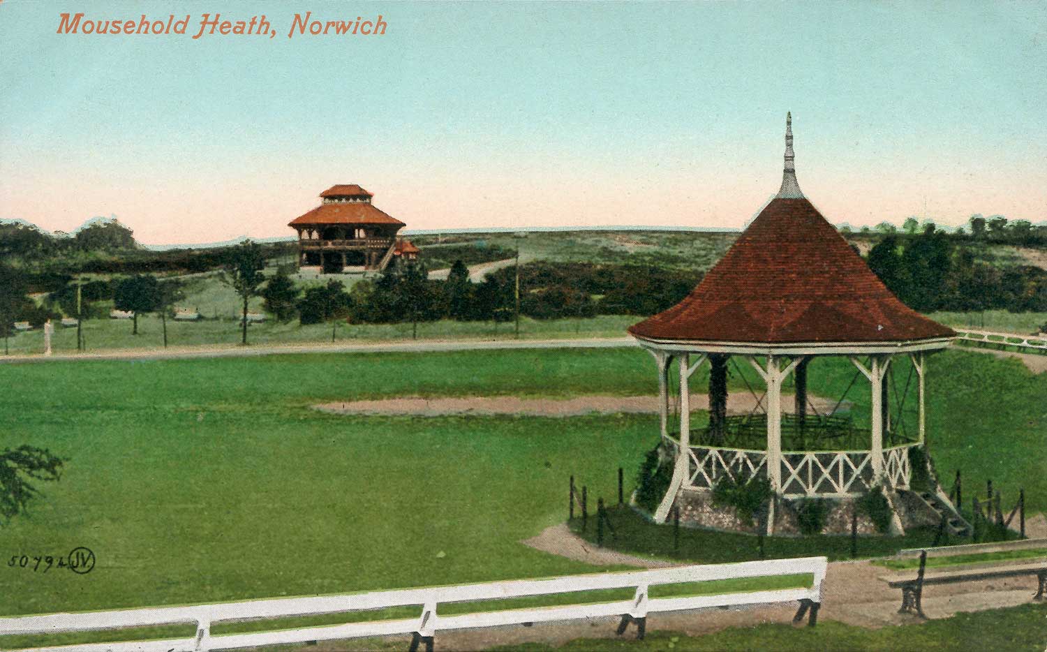 Today the bandstand hosts occasional performances during the summer, football matches are played on the adjacent pitch, and the pavilion is now home to Zaks Mousehold Diner. An 18-hole pitch and putt course has been opened close by and the Heath is much favoured by walkers, many with their dogs.