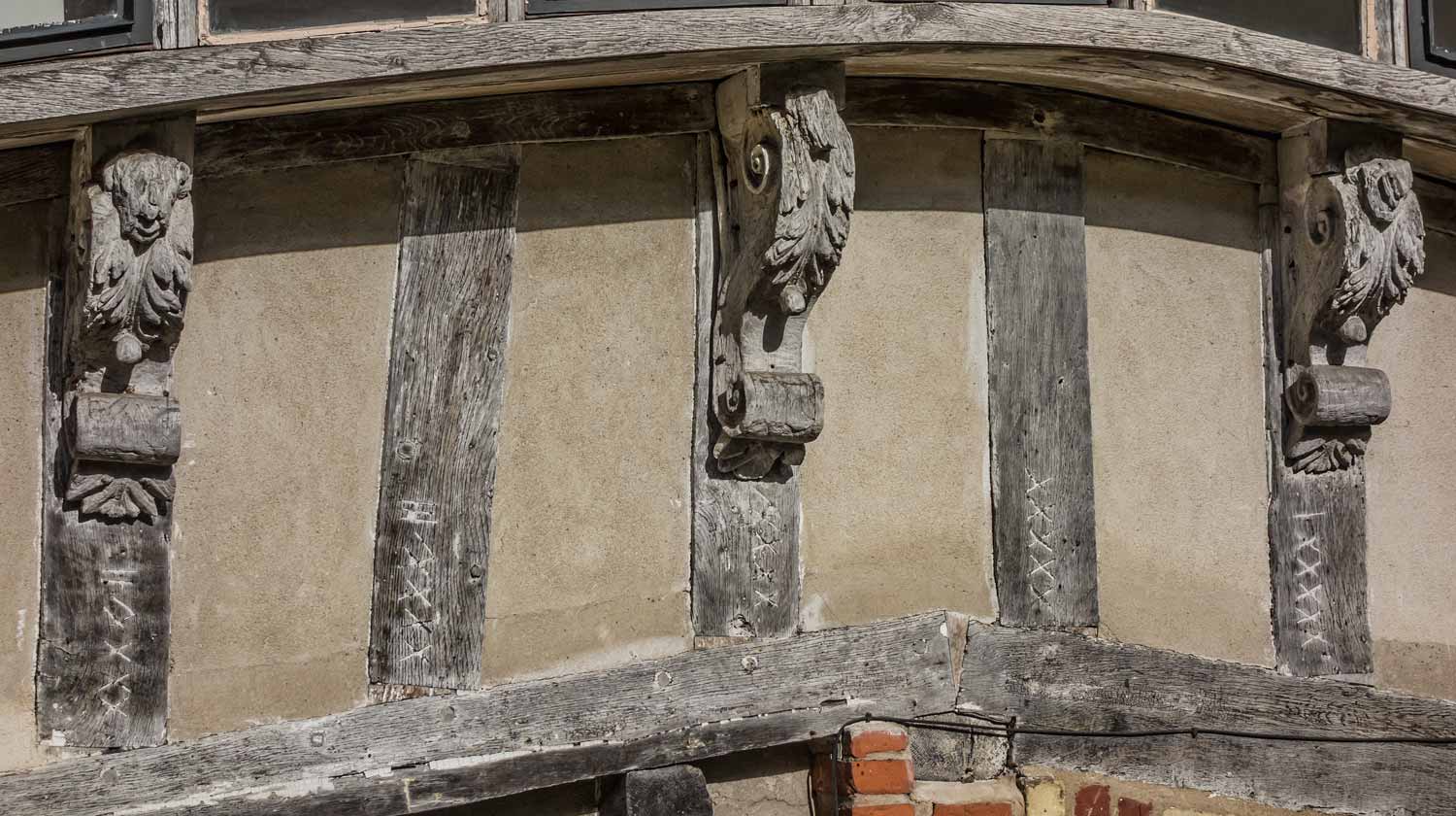 The timbers for Augustine Steward House were numbered so the builders knew which went where. Here are timbers 47 to 51.